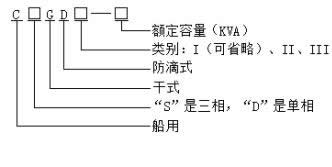 3、結(jié)構(gòu) a) 變壓器為防滴干式底腳安裝。 b) 變壓器絕緣為B級、F級或H級。 c) 三相變壓器有一個(gè)整體和三只或四只單相變壓器組成三種。變壓器箱體有優(yōu)質(zhì)鋼板制成,結(jié)構(gòu)即充分考慮到空氣流通,又能有效地防滴及防止鼠類進(jìn)入內(nèi)部。接線板及換接接線柱在變壓器箱體內(nèi),引入電纜可方便地通過箱體左側(cè)或右側(cè)的填料函接到接線板上。 4、型號及含義