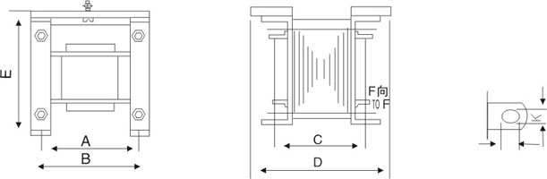 三、外型及安裝尺寸 | 型號 | 外形尺寸 | 安裝孔距 | 安裝孔 K×J | | B max | D max | E max | A | C | | JBK3-40 | 78 | 70 | 86 | 56±0.5 | 51±3 | 4.8×9 | | JBK3-63 | 78 | 70 | 86 | 56±0.5 | 51±2 | 4.8×9 | | JBK3-100 | 85 | 85 | 93 | 64±0.5 | 67±0.5 | 4.8×9 | | JBK3-160 | 96 | 90 | 103 | 84±0.5 | 74±2 | 5.8×11 | | JBK3-250 | 96 | 105 | 103 | 84±0.5 | 88±2 | 5.8×11 | | JBK3-300 | 96 | 115 | 114 | 84±0.5 | 96±2 | 5.8×11 | | JBK3-400 | 120 | 113 | 123 | 90±0.5 | 90±2 | 7×13 | | JBK3-630 | 150 | 118 | 145 | 122±0.5 | 86±2 | 7×13 | | JBK3-800 | 150 | 128 | 145 | 122±0.5 | 100±2 | 7×13 | | JBK3-1000 | 155 | 205 | 145 | 127.5±2 | 152±2 | 7×12臥式 | | JBK3-1600 | 180 | 230 | 160 | 140±2 | 176±2 | 7×12臥式 | | JBK3-2500 | 205 | 260 | 175 | 173±2 | 200±2 | 7×12臥式 |