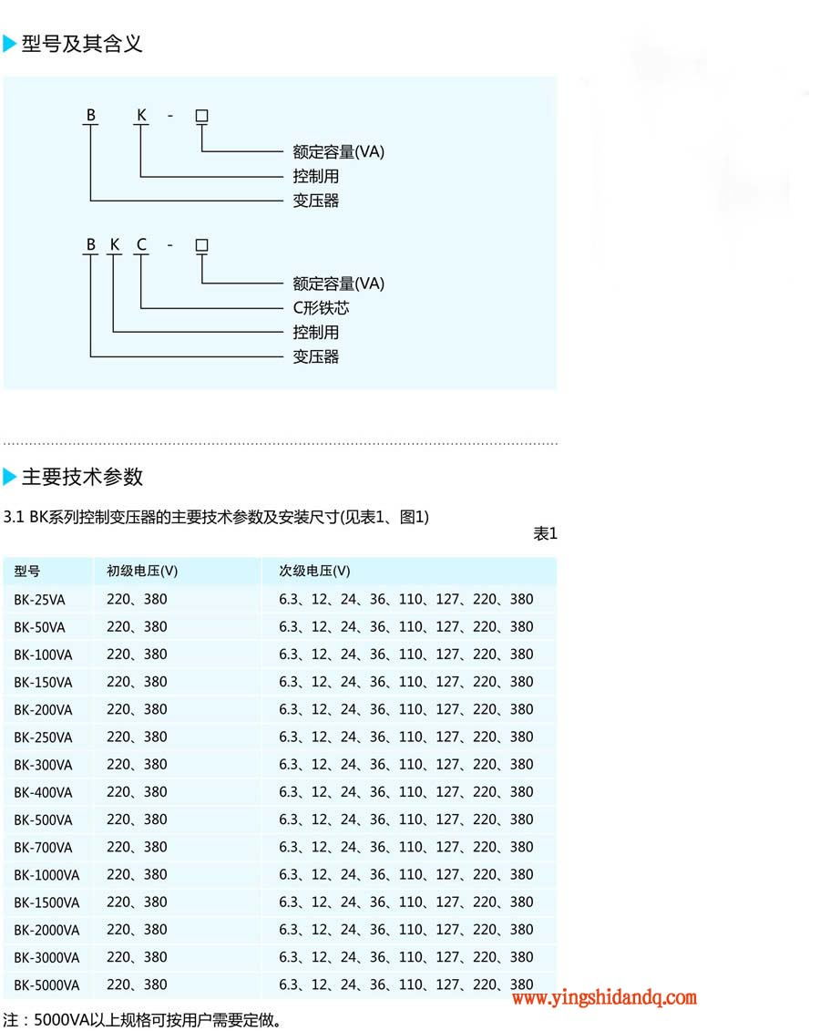 產(chǎn)品名稱BK/JBK控制變壓器